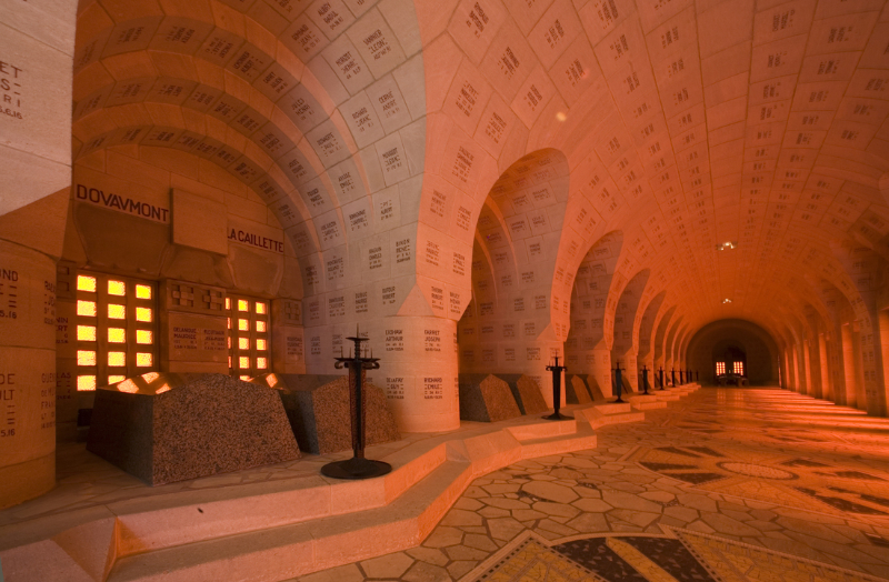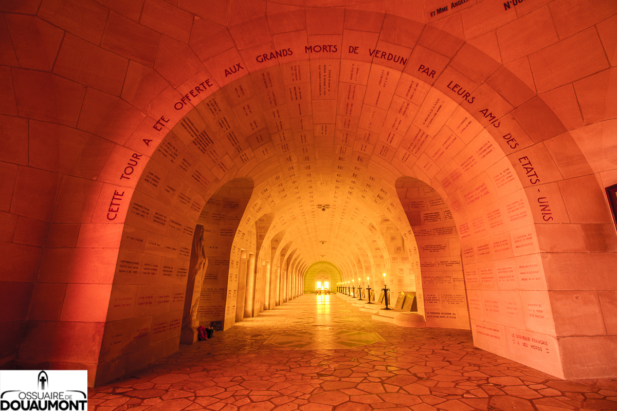 Ossuaire DouaumontMédias Médias Photos L’Ossuaire La Chapelle Le Cloître La Tour Vidéos Archives et Commémorations L’Ossuaire Voir plus Le Soldat Voir plus Infos pratiques Voir plus Actualités Voir plus Contact Voir plus